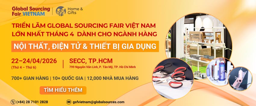 Từ ngày 22 – 24/4/2026, Global Sourcing Fair Việt Nam 2026 sẽ diễn ra tại Trung tâm Hội chợ & Triển lãm Sài Gòn (SECC). Đây là triển lãm tìm nguồn cung lớn nhất tháng 4, quy tụ hơn 700 gian hàng từ hơn 500 nhà cung cấp được xác minh tại Việt Nam và khắp châu Á như Trung Quốc, Hàn Quốc, Ấn Độ, Đài Loan, Bangladesh.