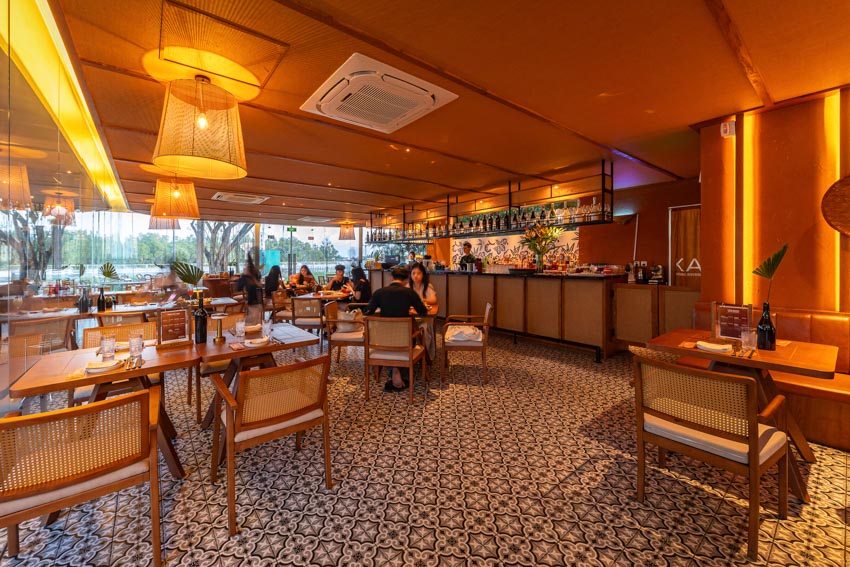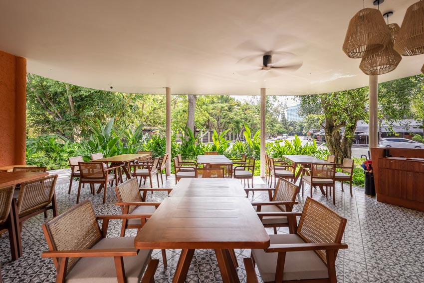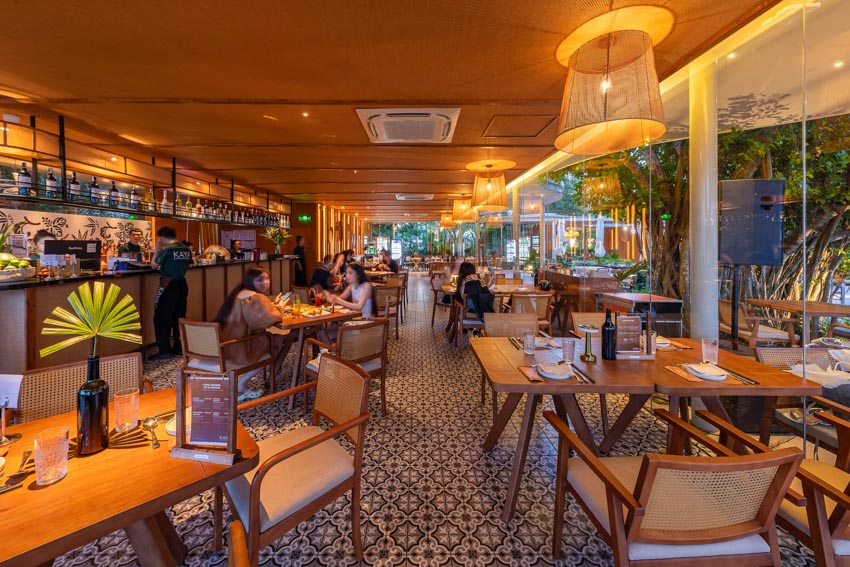 Từng món nội thất tại KAYA đều được làm thủ công: chiếc ghế mây uốn cong, mặt bàn gỗ trơn nhẵn, những chao đèn đan bằng tay. Không món nào giống món nào, nhưng tất cả hòa làm một trong tinh thần mộc mạc và thân thiện.